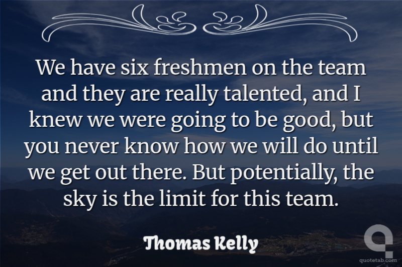 We have six freshmen on the team and they are really talented, and I knew we were going to be good, but you never know how we will do until we get out there. But potentially, the sky is the limit for this team. Thomas Kelly