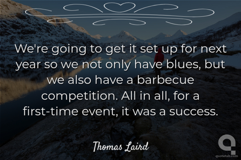 We're going to get it set up for next year so we not only have blues, but we also have a barbecue competition. All in all, for a first-time event, it was a success. Thomas Laird
