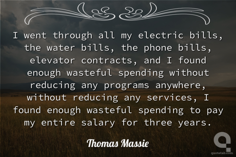 I went through all my electric bills, the water bills, the phone bills, elevator contracts, and I found enough wasteful spending without reducing any programs anywhere, without reducing any services, I found enough wasteful spending to pay my entire salary for three years. Thomas Massie