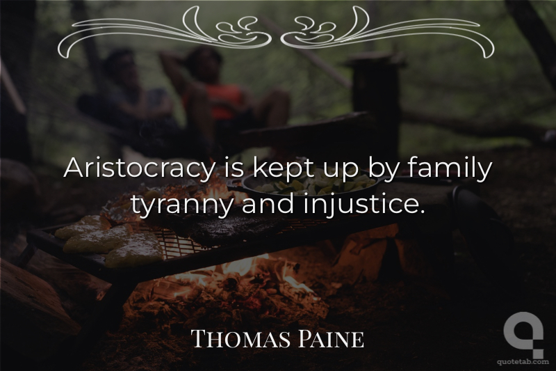 Aristocracy is kept up by family tyranny and injustice. Thomas Paine