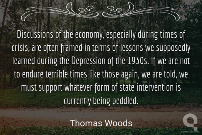 Discussions of the economy, especially during times of crisis, are often framed in terms of lessons we supposedly learned during the Depression of the 1930s. If we are not to endure terrible times like those again, we are told, we must support whatever form of state intervention is currently being peddled. Thomas Woods