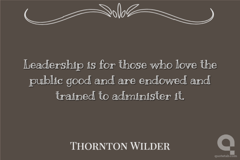 Thornton Wilder Leadership is for those who love the public good and are endowed and trained to administer it.