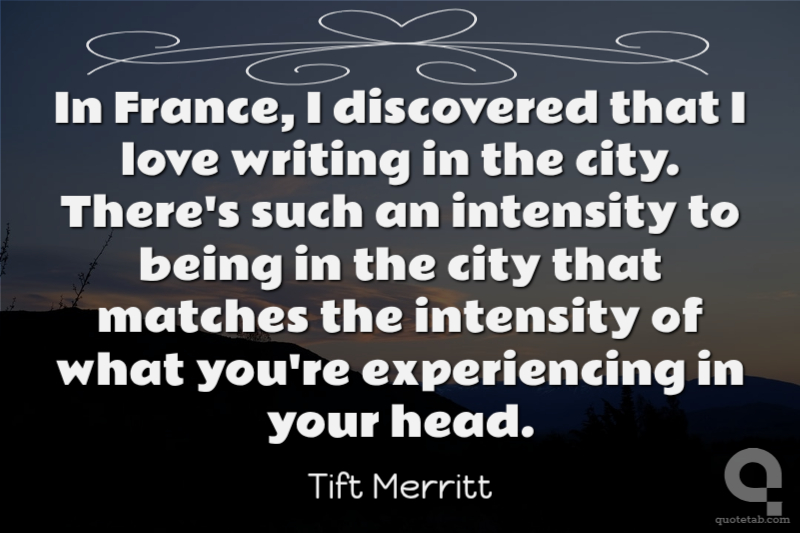 In France, I discovered that I love writing in the city. There's such an intensity to being in the city that matches the intensity of what you're experiencing in your head. Tift Merritt
