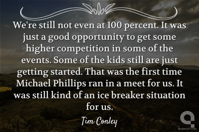 We're still not even at 100 percent. It was just a good opportunity to get some higher competition in some of the events. Some of the kids still are just getting started. That was the first time Michael Phillips ran in a meet for us. It was still kind of an ice breaker situation for us. Tim Conley