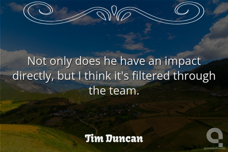 Not only does he have an impact directly, but I think it's filtered through the team. Tim Duncan