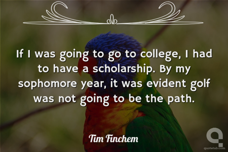 If I was going to go to college, I had to have a scholarship. By my sophomore year, it was evident golf was not going to be the path. Tim Finchem