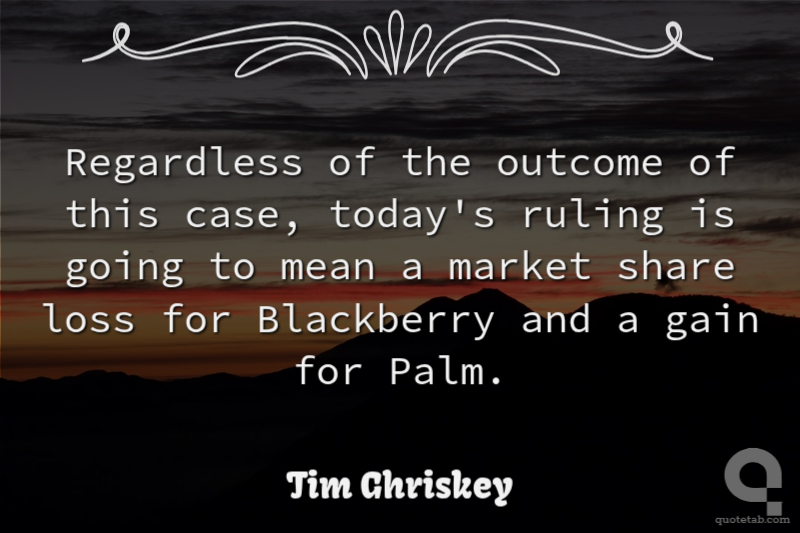 Regardless of the outcome of this case, today's ruling is going to mean a market share loss for Blackberry and a gain for Palm. Tim Ghriskey