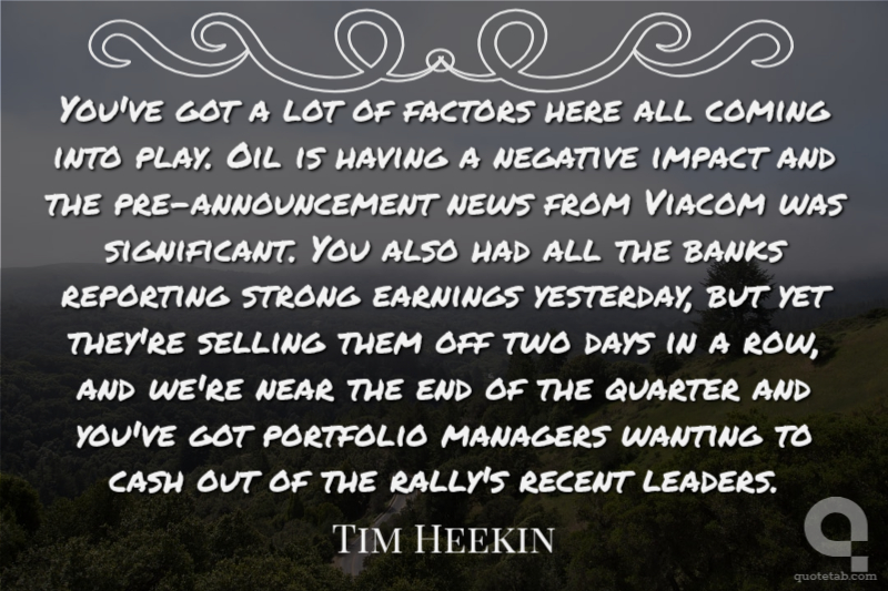 There are a lot of cross-currents in the market. We're still a market that's torn between (concern about) earnings and interest rates. Tracy Eichler