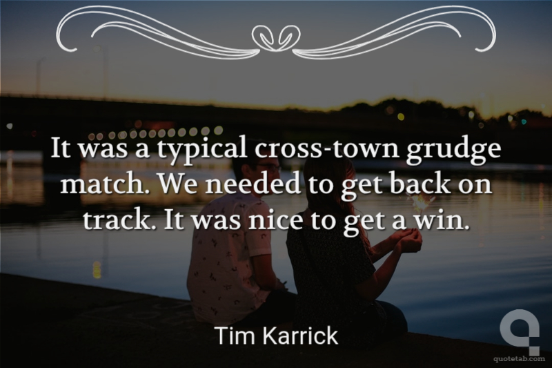 It was a typical cross-town grudge match. We needed to get back on track. It was nice to get a win. Tim Karrick