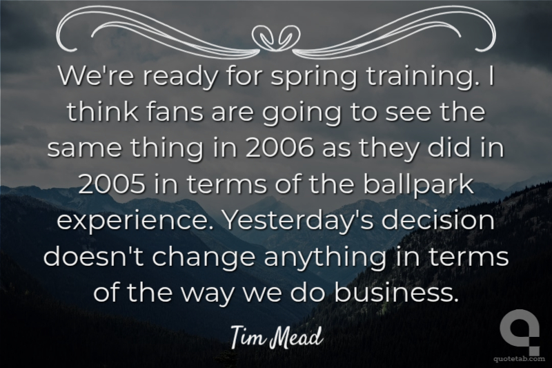We're ready for spring training. I think fans are going to see the same thing in 2006 as they did in 2005 in terms of the ballpark experience. Yesterday's decision doesn't change anything in terms of the way we do business. Tim Mead