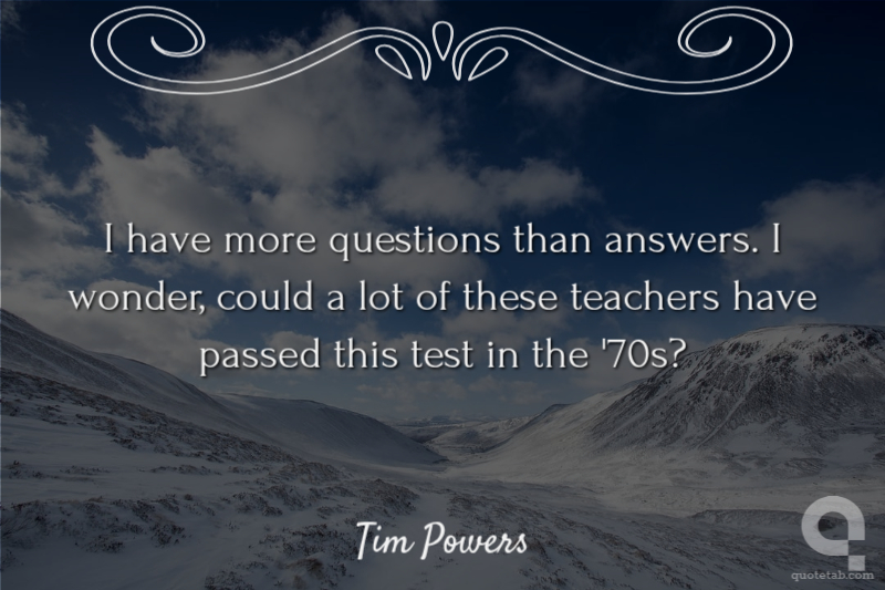 I have more questions than answers. I wonder, could a lot of these teachers have passed this test in the '70s? Tim Powers