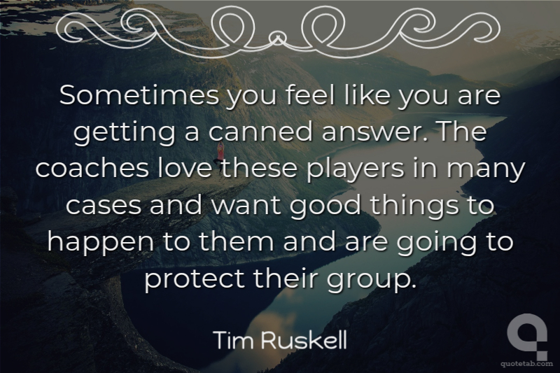 Sometimes you feel like you are getting a canned answer. The coaches love these players in many cases and want good things to happen to them and are going to protect their group. Tim Ruskell