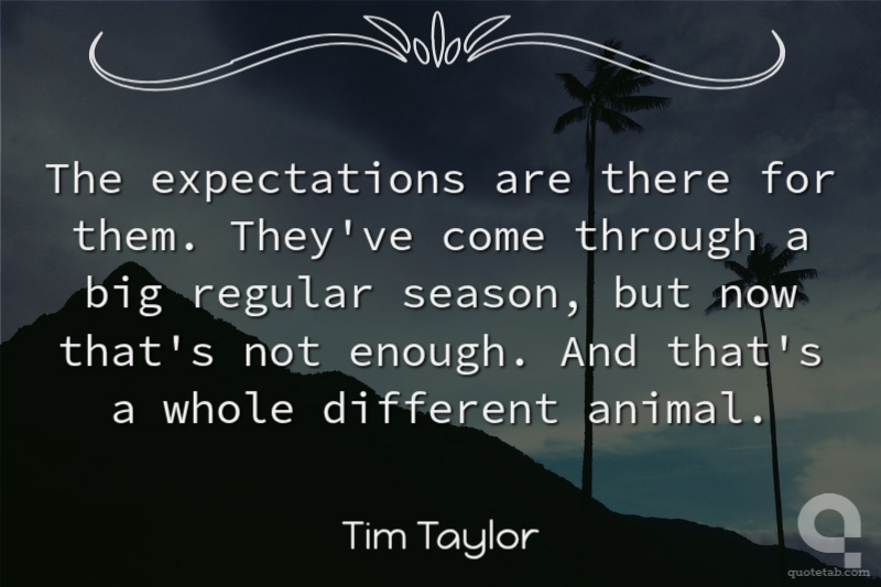 The expectations are there for them. They've come through a big regular season, but now that's not enough. And that's a whole different animal. Tim Taylor