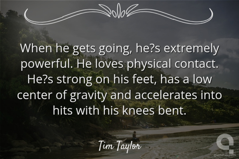 When he gets going, he?s extremely powerful. He loves physical contact. He?s strong on his feet, has a low center of gravity and accelerates into hits with his knees bent. Tim Taylor