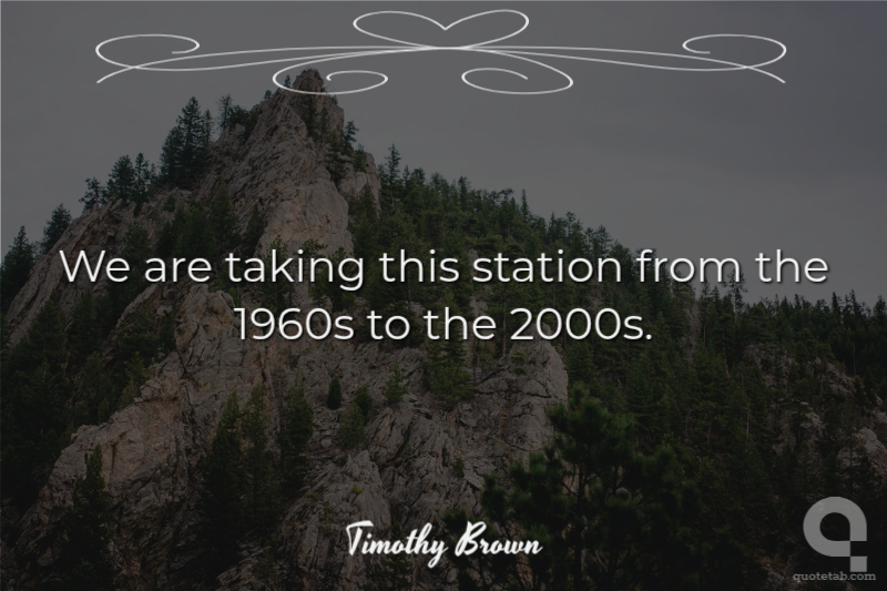 We are taking this station from the 1960s to the 2000s. Timothy Brown
