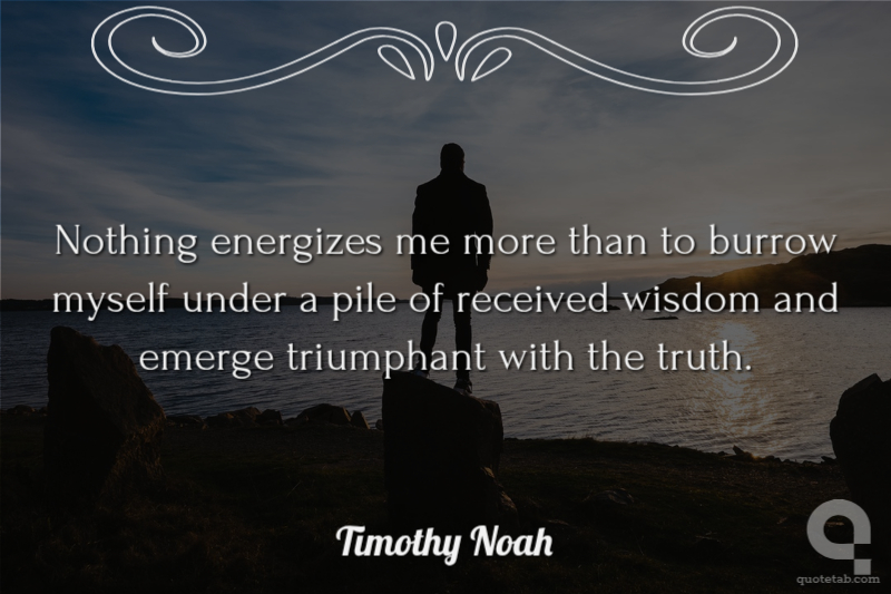 Nothing energizes me more than to burrow myself under a pile of received wisdom and emerge triumphant with the truth. Timothy Noah