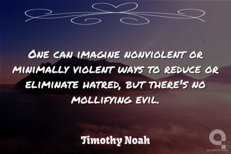 One can imagine nonviolent or minimally violent ways to reduce or eliminate hatred, but there's no mollifying evil. Timothy Noah