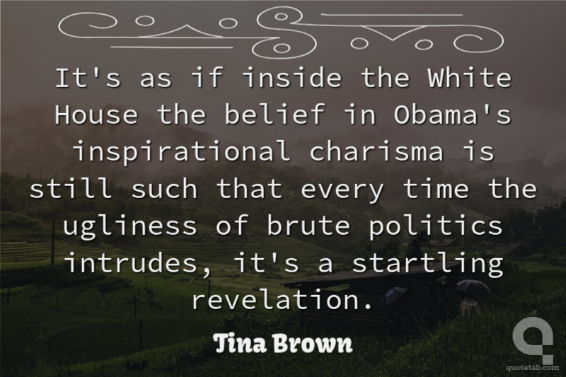 It's as if inside the White House the belief in Obama's inspirational charisma is still such that every time the ugliness of brute politics intrudes, it's a startling revelation. Tina Brown