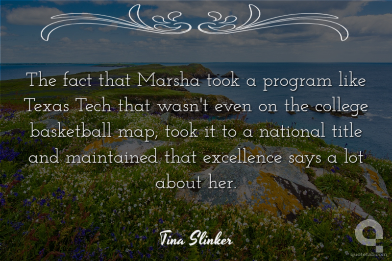 The fact that Marsha took a program like Texas Tech that wasn't even on the college basketball map, took it to a national title and maintained that excellence says a lot about her. Tina Slinker