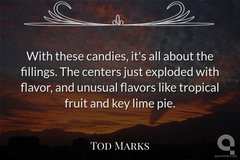 With these candies, it's all about the fillings. The centers just exploded with flavor, and unusual flavors like tropical fruit and key lime pie. Tod Marks