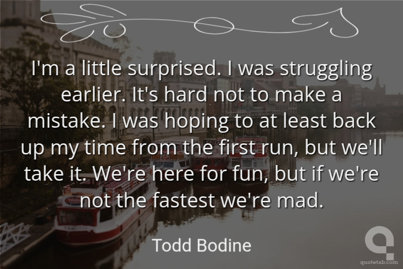 I'm a little surprised. I was struggling earlier. It's hard not to make a mistake. I was hoping to at least back up my time from the first run, but we'll take it. We're here for fun, but if we're not the fastest we're mad. Todd Bodine