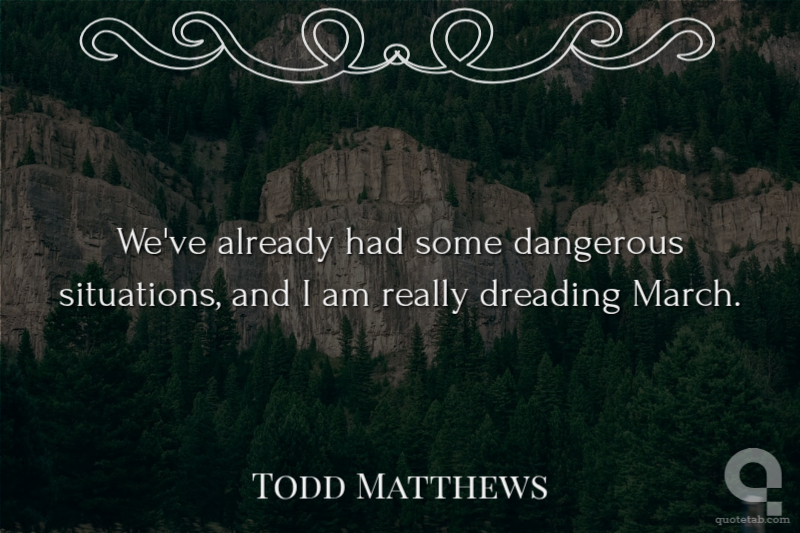 We've already had some dangerous situations, and I am really dreading March. Todd Matthews