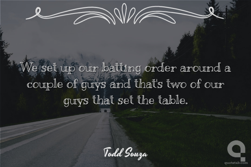 We set up our batting order around a couple of guys and that's two of our guys that set the table. Todd Souza