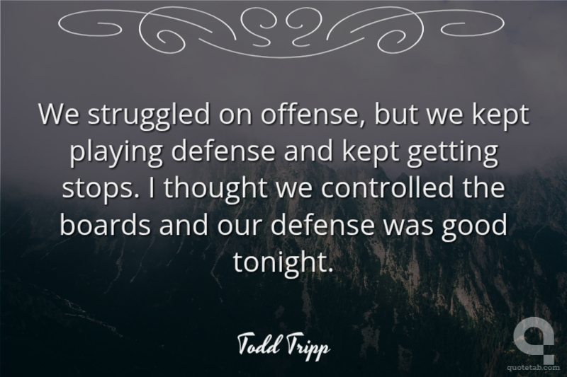 We struggled on offense, but we kept playing defense and kept getting stops. I thought we controlled the boards and our defense was good tonight. Todd Tripp