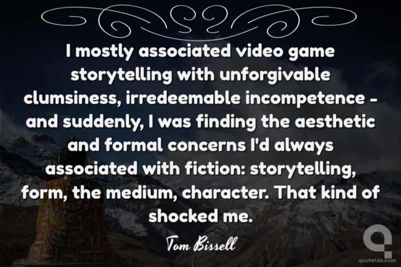 I mostly associated video game storytelling with unforgivable clumsiness, irredeemable incompetence - and suddenly, I was finding the aesthetic and formal concerns I'd always associated with fiction: storytelling, form, the medium, character. That kind of shocked me. Tom Bissell