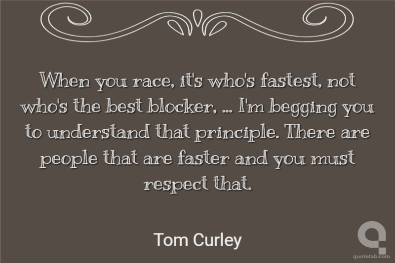 When you race, it's who's fastest, not who's the best blocker, ... I'm begging you to understand that principle. There are people that are faster and you must respect that. Tom Curley