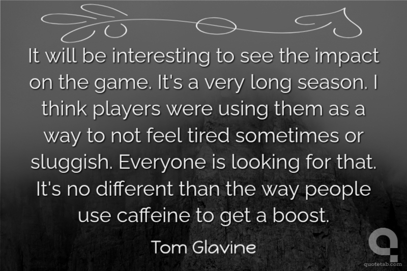 It will be interesting to see the impact on the game. It's a very long season. I think players were using them as a way to not feel tired sometimes or sluggish. Everyone is looking for that. It's no different than the way people use caffeine to get a boost. Tom Glavine