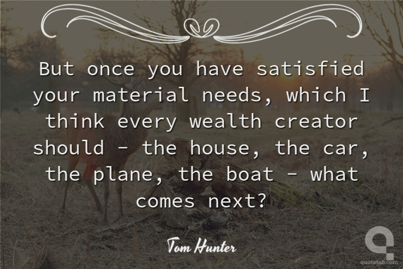 But once you have satisfied your material needs, which I think every wealth creator should - the house, the car, the plane, the boat - what comes next? Tom Hunter