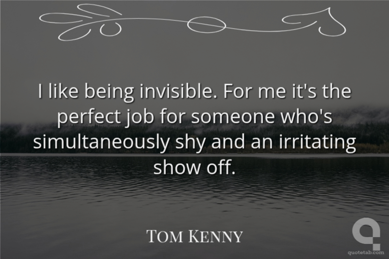 I like being invisible. For me it's the perfect job for someone who's simultaneously shy and an irritating show off. Tom Kenny
