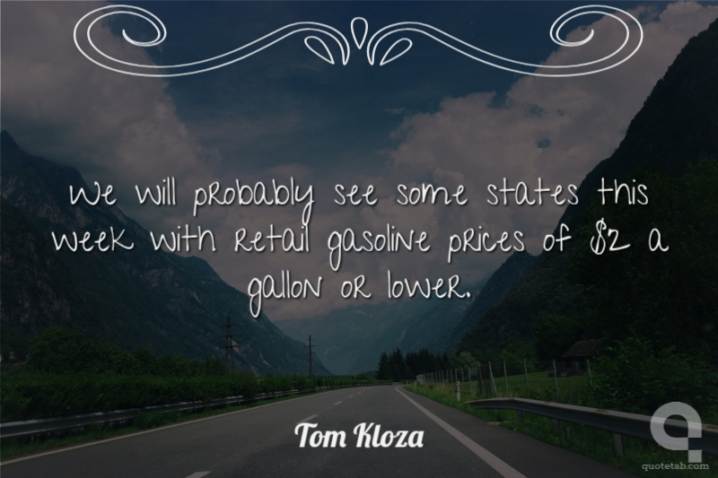 We will probably see some states this week with retail gasoline prices of $2 a gallon or lower. Tom Kloza
