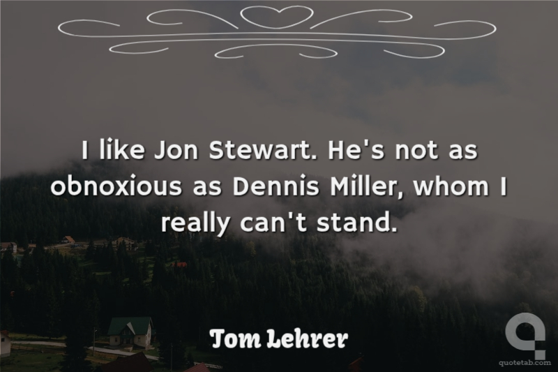 I like Jon Stewart. He's not as obnoxious as Dennis Miller, whom I really can't stand. Tom Lehrer
