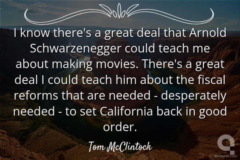 I know there's a great deal that Arnold Schwarzenegger could teach me about making movies. There's a great deal I could teach him about the fiscal reforms that are needed - desperately needed - to set California back in good order. Tom McClintock