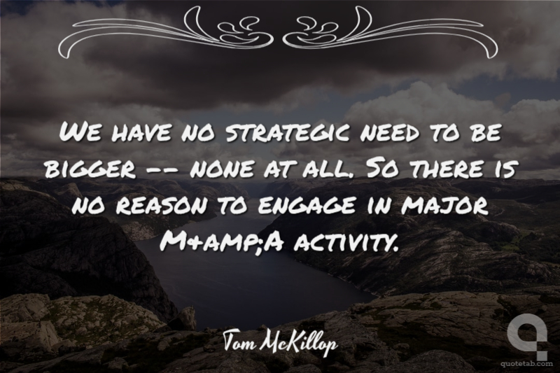 We have no strategic need to be bigger -- none at all. So there is no reason to engage in major M&A activity. Tom McKillop