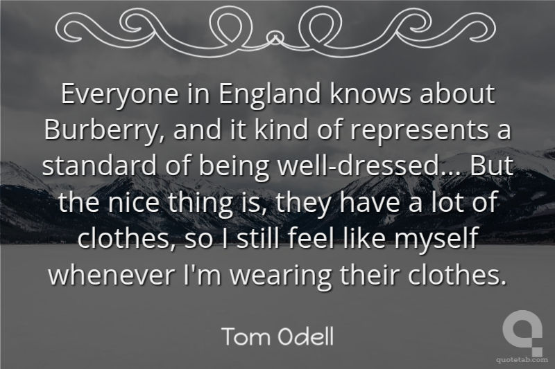 Everyone in England knows about Burberry, and it kind of represents a standard of being well-dressed... But the nice thing is, they have a lot of clothes, so I still feel like myself whenever I'm wearing their clothes. Tom Odell