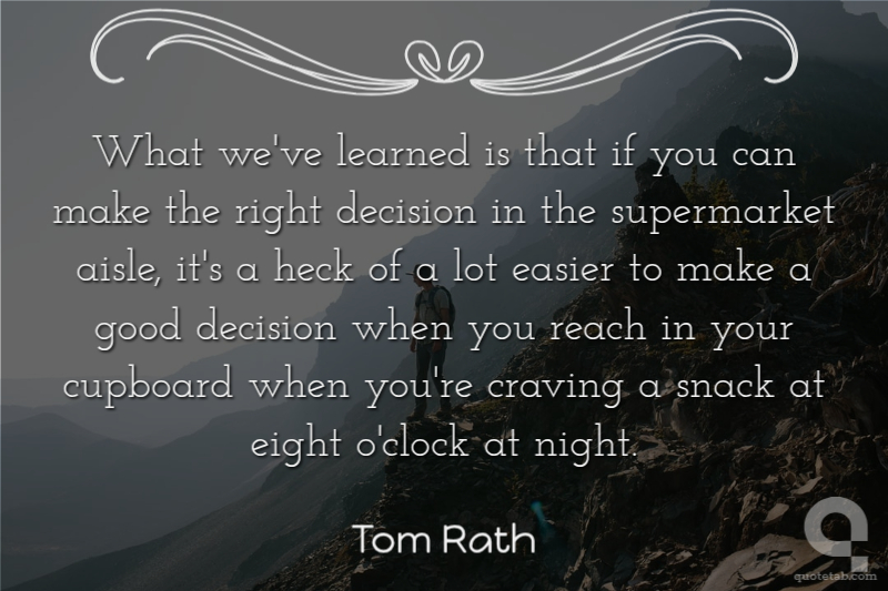 What we've learned is that if you can make the right decision in the supermarket aisle, it's a heck of a lot easier to make a good decision when you reach in your cupboard when you're craving a snack at eight o'clock at night. Tom Rath