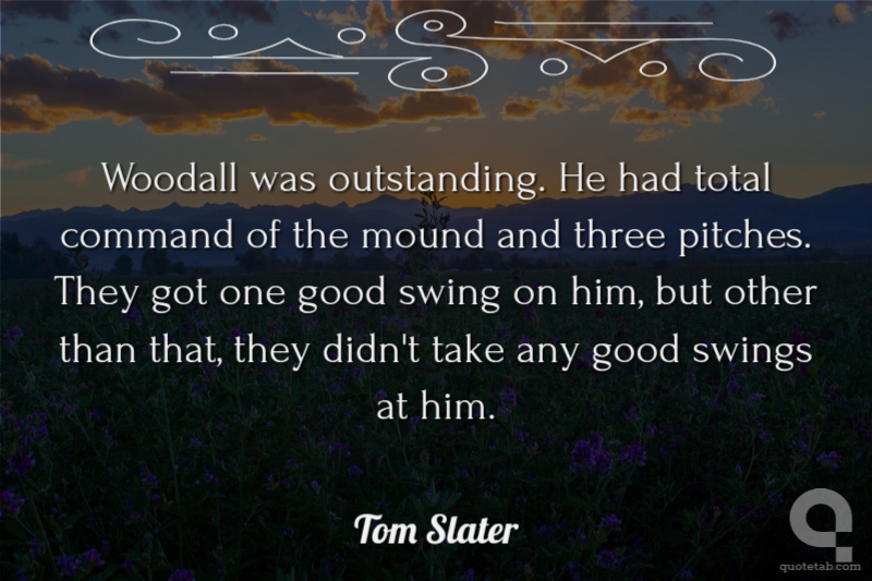 Woodall was outstanding. He had total command of the mound and three pitches. They got one good swing on him, but other than that, they didn't take any good swings at him. Tom Slater