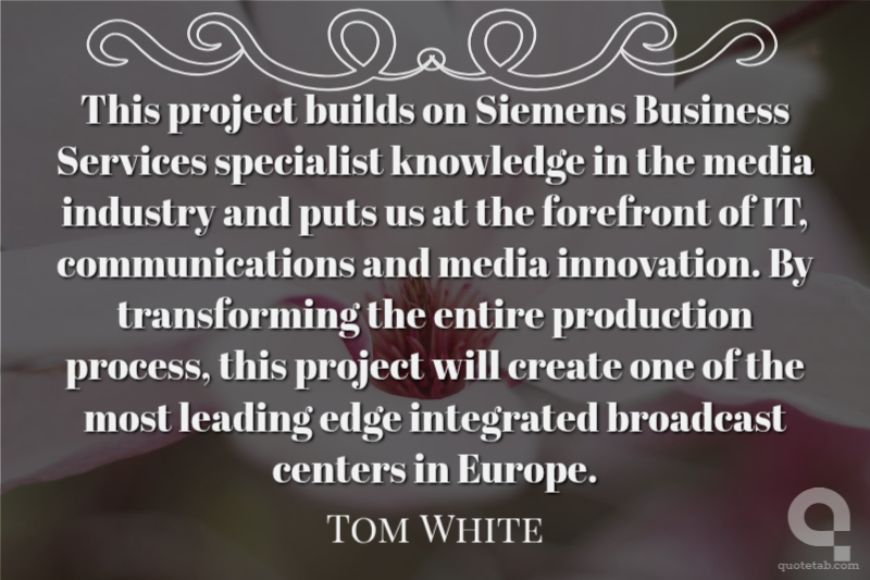 This project builds on Siemens Business Services specialist knowledge in the media industry and puts us at the forefront of IT, communications and media innovation. By transforming the entire production process, this project will create one of the most leading edge integrated broadcast centers in Europe. Tom White