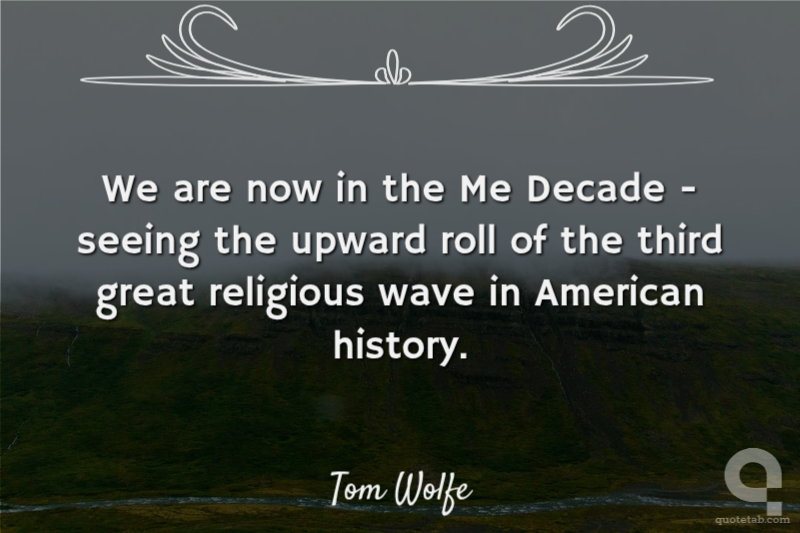 We are now in the Me Decade - seeing the upward roll of the third great religious wave in American history. Tom Wolfe