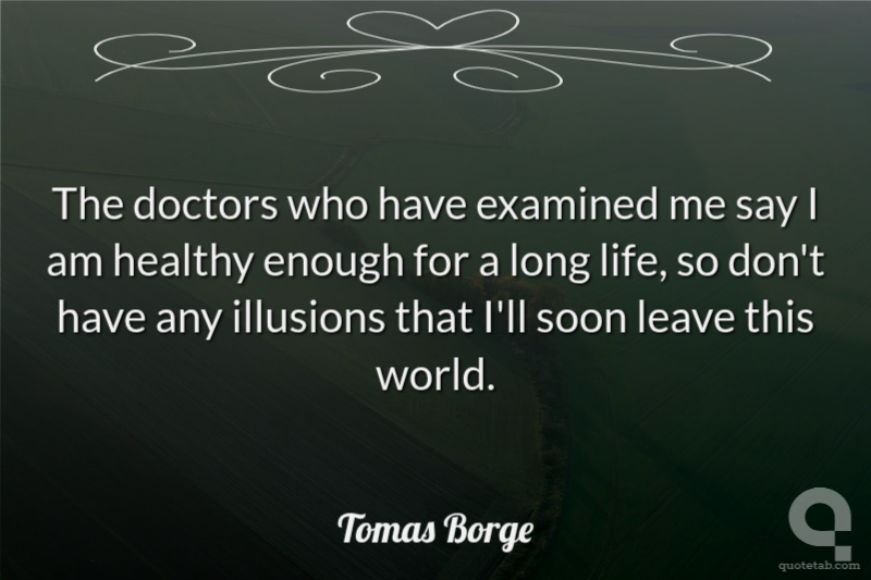 The doctors who have examined me say I am healthy enough for a long life, so don't have any illusions that I'll soon leave this world. Tomas Borge