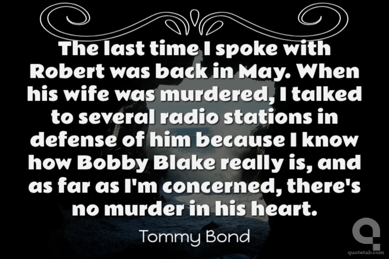The last time I spoke with Robert was back in May. When his wife was murdered, I talked to several radio stations in defense of him because I know how Bobby Blake really is, and as far as I'm concerned, there's no murder in his heart. Tommy Bond