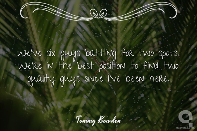 We've six guys battling for two spots. We're in the best position to find two quality guys since I've been here. Tommy Bowden
