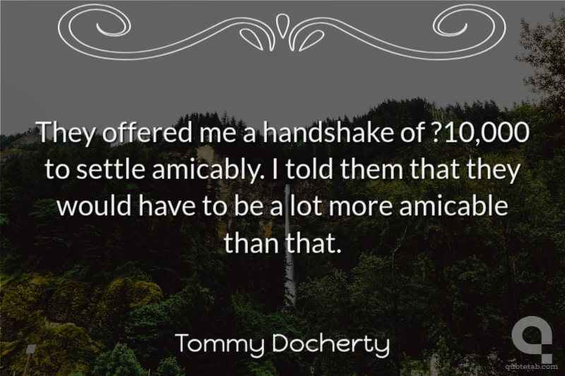 They offered me a handshake of ?10,000 to settle amicably. I told them that they would have to be a lot more amicable than that. Tommy Docherty