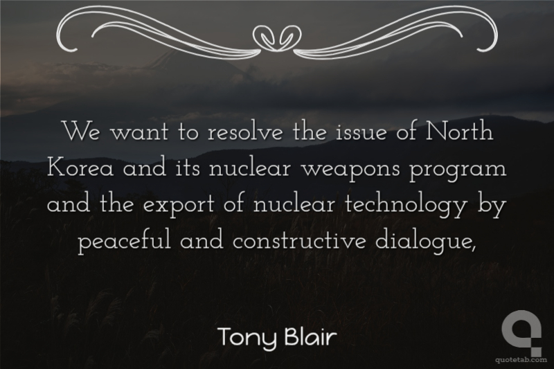 We want to resolve the issue of North Korea and its nuclear weapons program and the export of nuclear technology by peaceful and constructive dialogue, Tony Blair