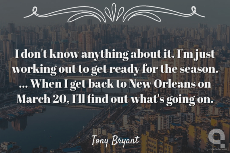 I don't know anything about it. I'm just working out to get ready for the season. ... When I get back to New Orleans on March 20, I'll find out what's going on. Tony Bryant