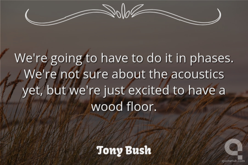 We're going to have to do it in phases, ... We're not sure about the acoustics yet, but we're just excited to have a wood floor. Tony Bush