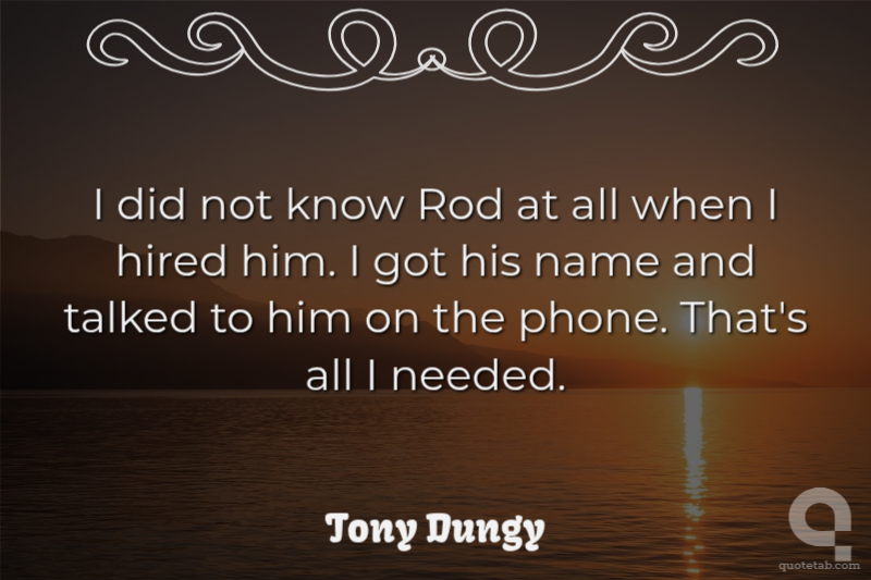 I did not know Rod at all when I hired him. I got his name and talked to him on the phone. That's all I needed. Tony Dungy